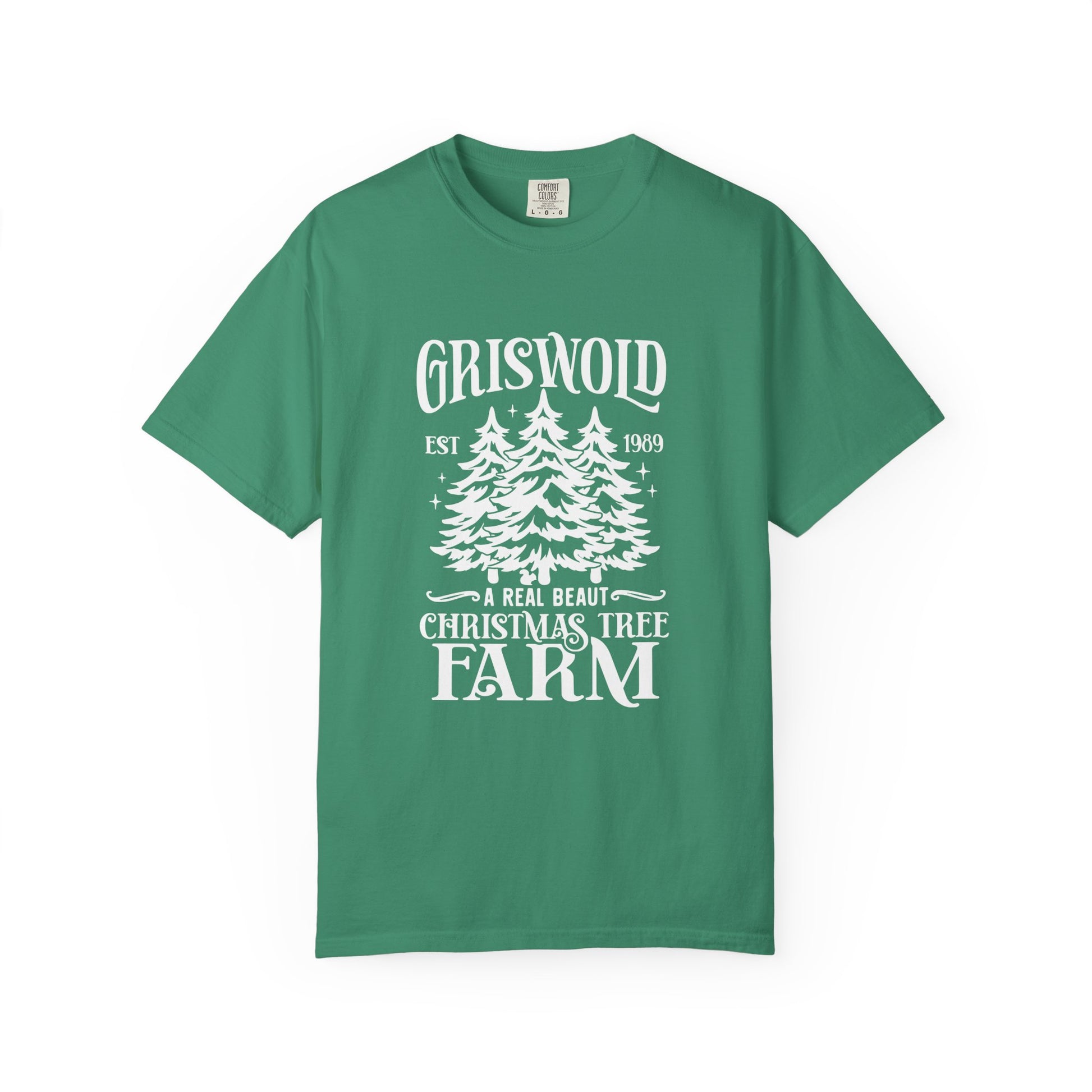 Celebrate the holiday season with this Griswold Christmas Tree Farm T-shirt inspired by National Lampoon's Christmas Vacation. This relaxed fit, medium fabric T-shirt is perfect for fans of the movie and those looking to add a festive touch to their wardrobe. A great gift for Christmas enthusiasts and fans of the classic comedy film.