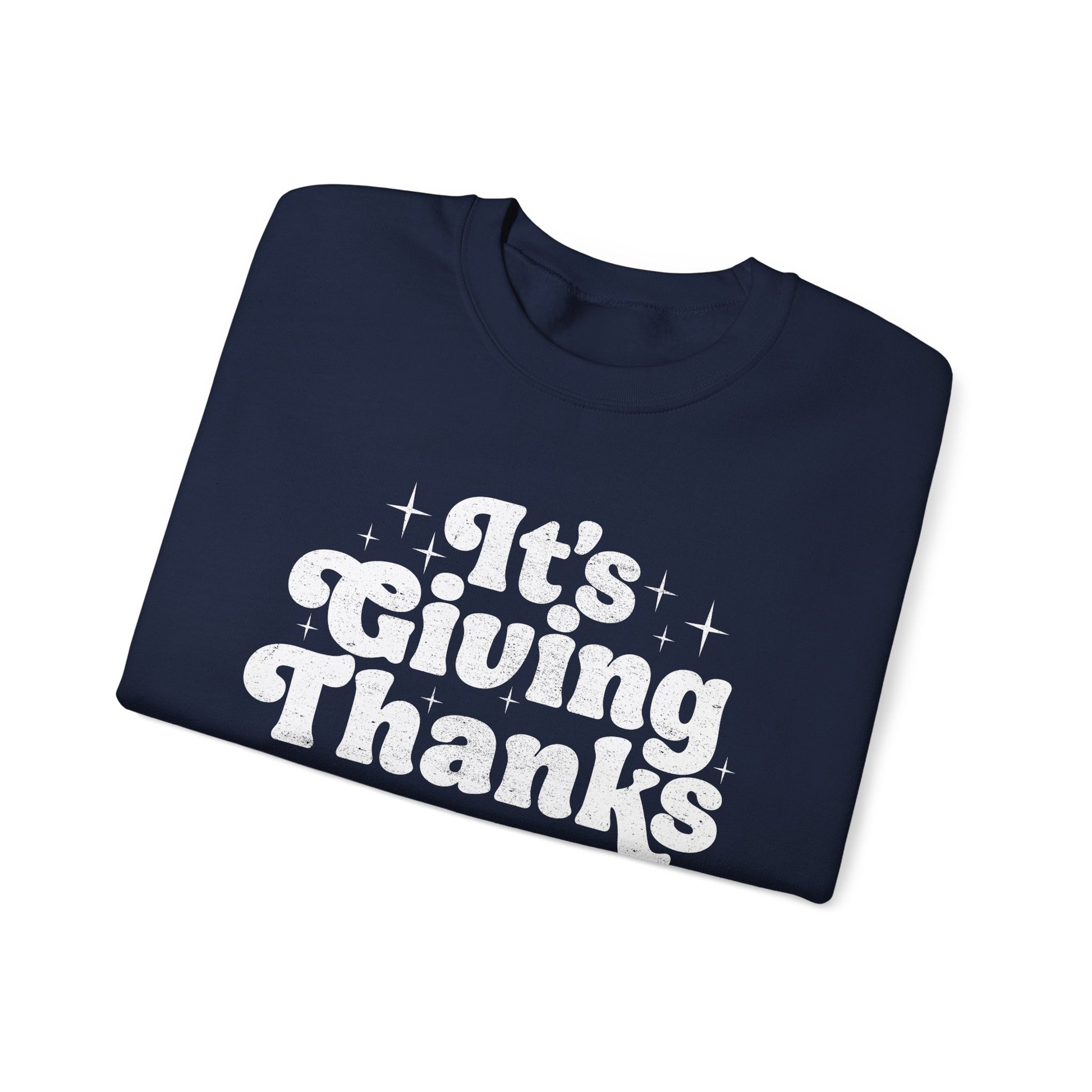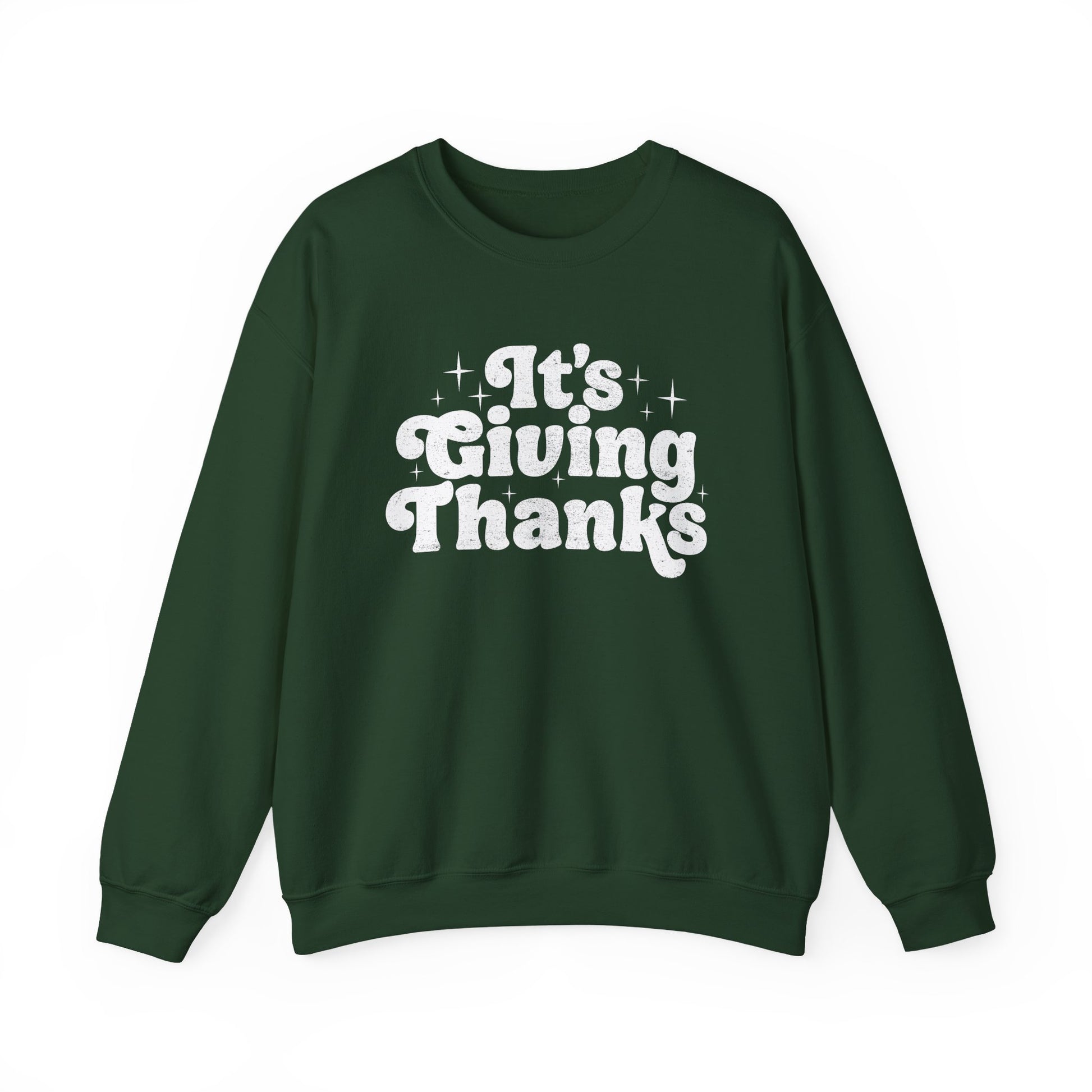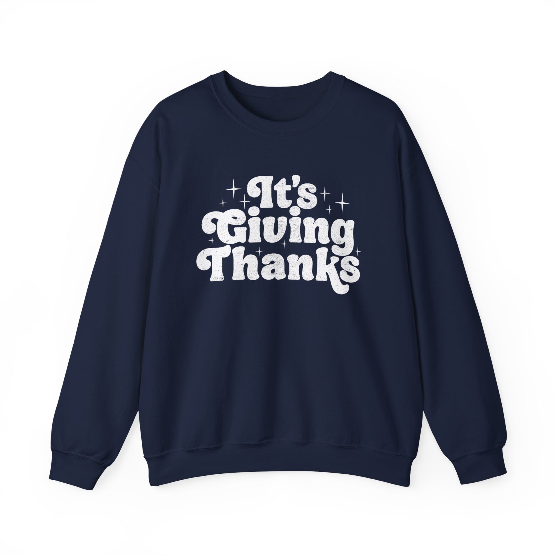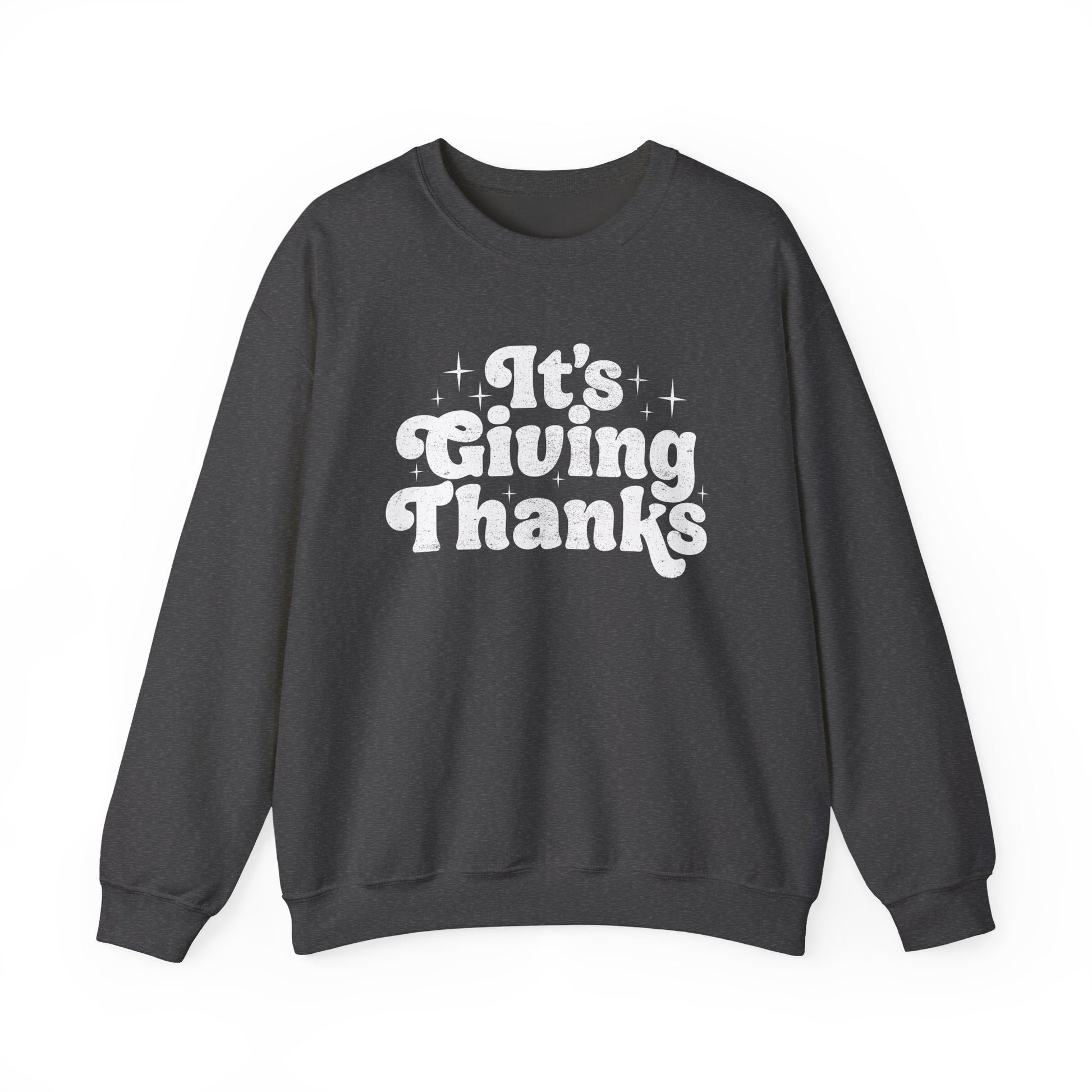 This Giving Thanks Crewneck Sweatshirt exudes cozy vibes perfect for the fall and Thanksgiving season. It is designed for adults looking for a comfortable and stylish sweatshirt to wear during the holiday festivities.