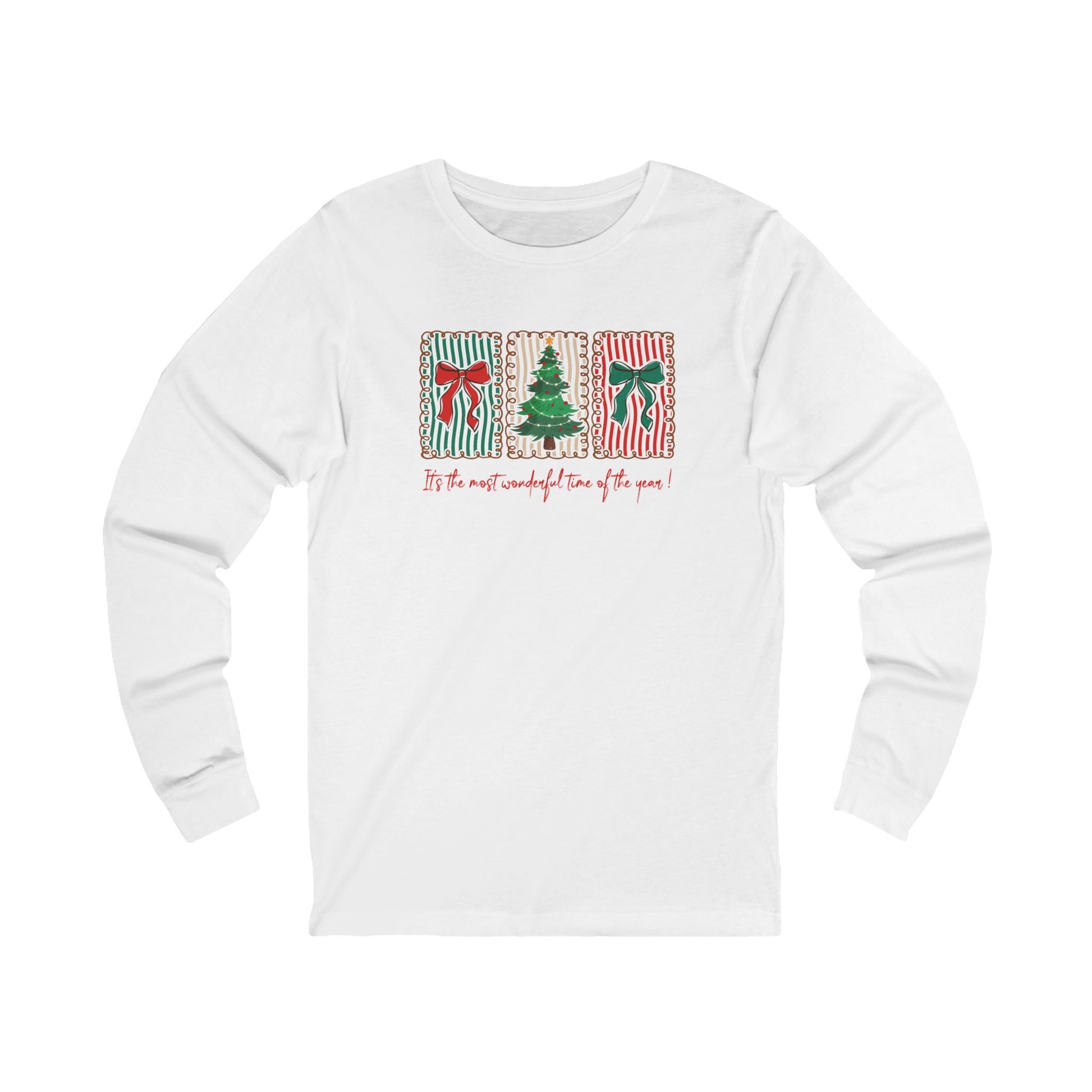 Celebrate the holiday season with this festive long-sleeve tee, perfect for spreading cheer and warmth. Ideal for adults looking to add some holiday spirit to their wardrobe. Relevant for Christmas, New Year's, and winter festivities.
